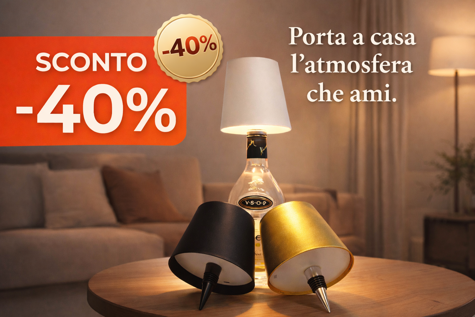 Sì. LUMEO è progettata per adattarsi alla maggior parte delle bottiglie standard in vetro (vino, liquori, gin, ecc.). Basta inserire la lampada nel collo della bottiglia e il gioco è fatto, senza attrezzi.